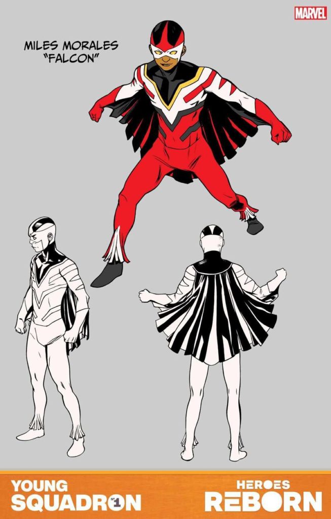 “El Escuadrón Supremo de América se ha arraigado en los corazones y las mentes de todos, ¡pero en ninguno más que un trío de jóvenes campeones que se hacen llamar Young Squadron!”, dice la descripción de Heroes Reborn: Young Squadron #1. “Kid Spectrum (Sam Alexander), Girl Power (Kamala Khan) y el nuevo Falcon (Miles Morales) están aquí para luchar por la verdad, la justicia y la bandera estadounidense … ¿o no?