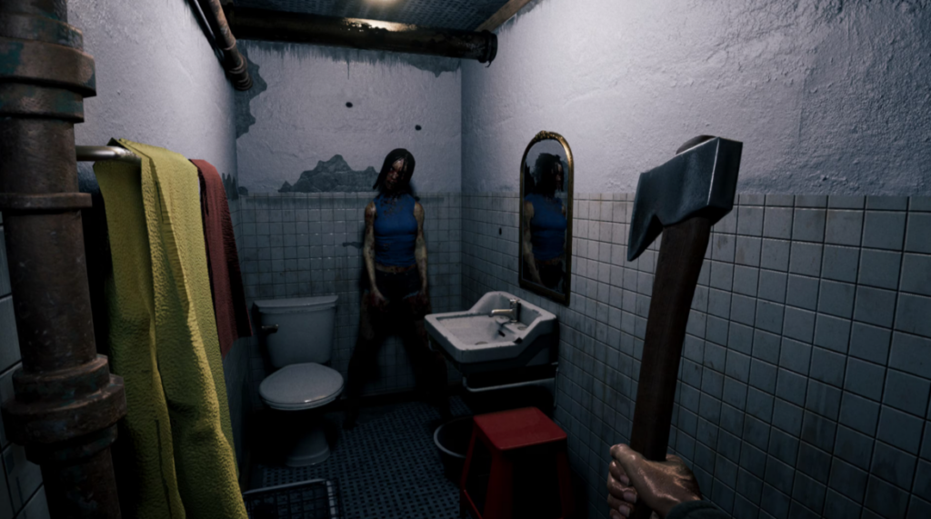 Cuidado que los enemigos no son para nada tontos: te persiguen con inteligencia básica pero efectiva, forzándote a retroceder por laberintos de habitaciones idénticas. En mi partida, un «colgado» espectral me acorraló en un baño, su cuello torcido chasqueando mientras yo malgastaba balas. Tampoco faltan los sustos repentinos… y potentes: un rostro que emerge de la pared, un susurro que dice tu nombre real (o eso creí). Pero tampoco abusan y eso es una buena noticia, ya que el verdadero terror radica en la acumulación, en saber que cada puerta podría ser la última.