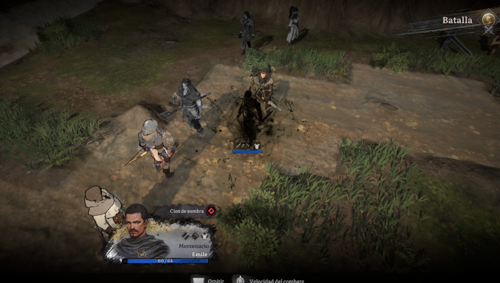 Gráficamente es una mezcla algo rara, ya que los retratos de personajes son dibujos a mano preciosos, con expresiones que cuentan historias por si solas… Pero en las batallas, los modelos 3D son simples, como de juegos antiguos, con colores apagados y texturas que no deslumbran. Lo hemos jugado en PS5 y va fluido, a 60 fps. Gráficamente no está mal, cumple, pero no te va a dejar con la boca abierta como uno de esos juegos punteros o como un indie en el que han volcado todo el talento en el arte gráfico. Lo compensa con animaciones limpias en los ataques y jefes con fases que te obligan a cambiar de plan sobre la marcha.
