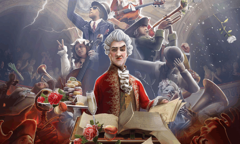El juego comienza con un tutorial imprescindible de unos 20 minutos impartido por Eric, un bibliotecario francés sarcástico con peluca blanca y aire vampírico, que te guía por los gestos básicos: flicks con la batuta derecha para tempo y dinámicas, apuntar con la izquierda para cues y palmas arriba/abajo para crescendos/diminuendos.