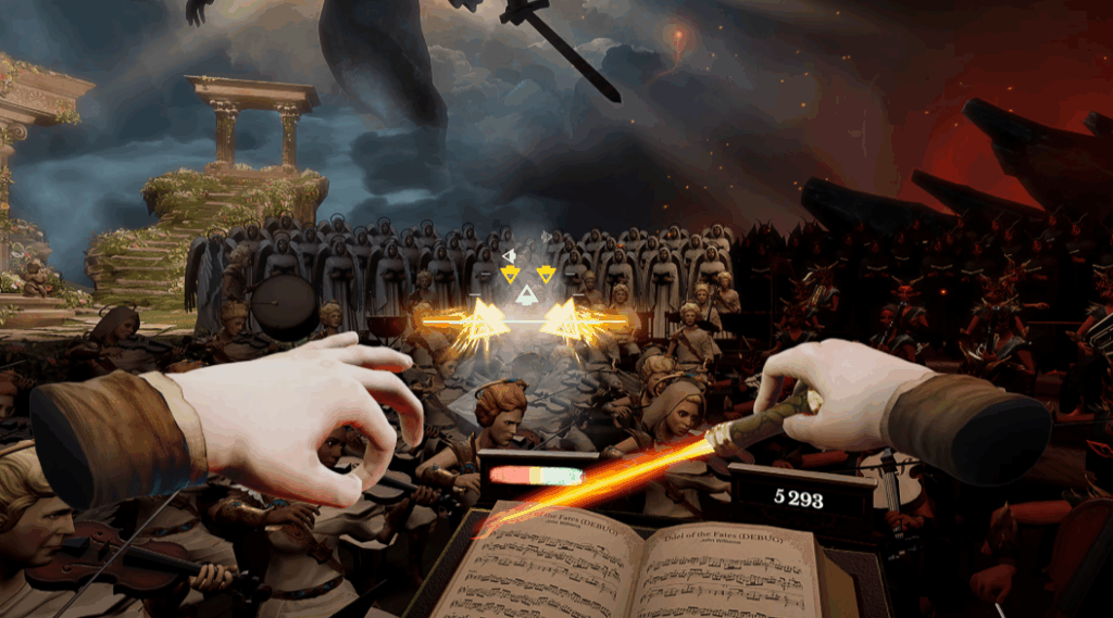 Desarrollado por Double Jack y lanzado el 20 de junio de 2025 para PSVR2 (después de su éxito en MetaQuest y PCVR), este rhythm game redefine la sofisticación cultural en VR. No se trata de cortar con sables o de disparar arcos y flechas, sino de esculpir crescendos con gestos precisos, controlar secciones instrumentales y marcar el tempo como un verdadero maestro. Con el soporte nativo para hand tracking de PSVR2, tus manos reales se convierten en batutas mágicas, haciendo que la experiencia se sienta auténtica y satisfactoria.
