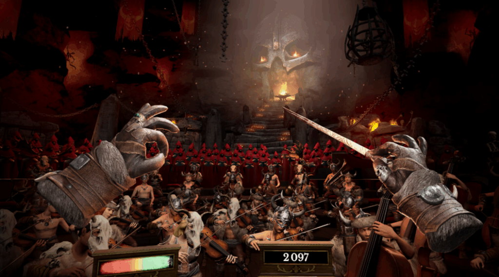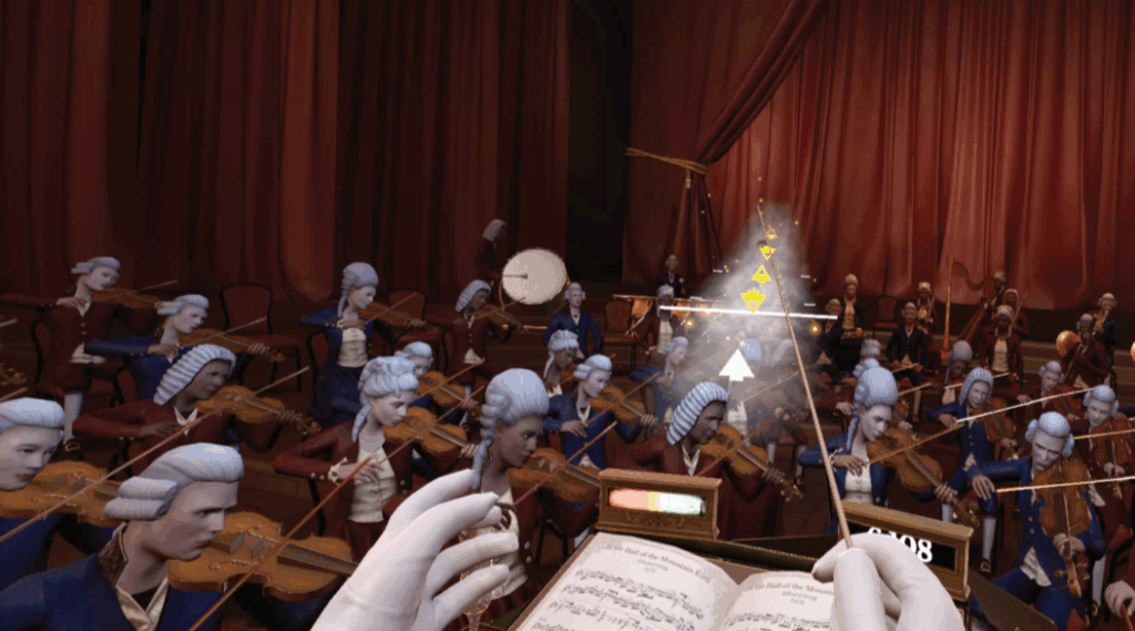 El sonido es de 10: la orquesta responde orgánicamente y de manera muy natural, mientras que los fallos suenan trágicos, incluso cómicos a veces. La inmersión en VR es total porque sientes el peso de 100 músicos a tus órdenes y al público juzgándote.