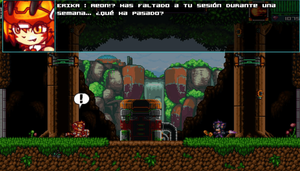 Elige tu partner (o waifu cibernética) al empezar y lánzate a 9 niveles lineales pero densos repletos de elementos decorativos, obstáculos, enemigos, trampas… La historia es simple: corre, mata, rescata a un colega al que le han lavado el cerebro y acaba con el jefe final. Los diálogos vienen con toques cómicos torpes y algún que otro error en la traducción (sí, tiene subs en castellano), pero ¿quién necesita Shakespeare cuando hay tanta acción?