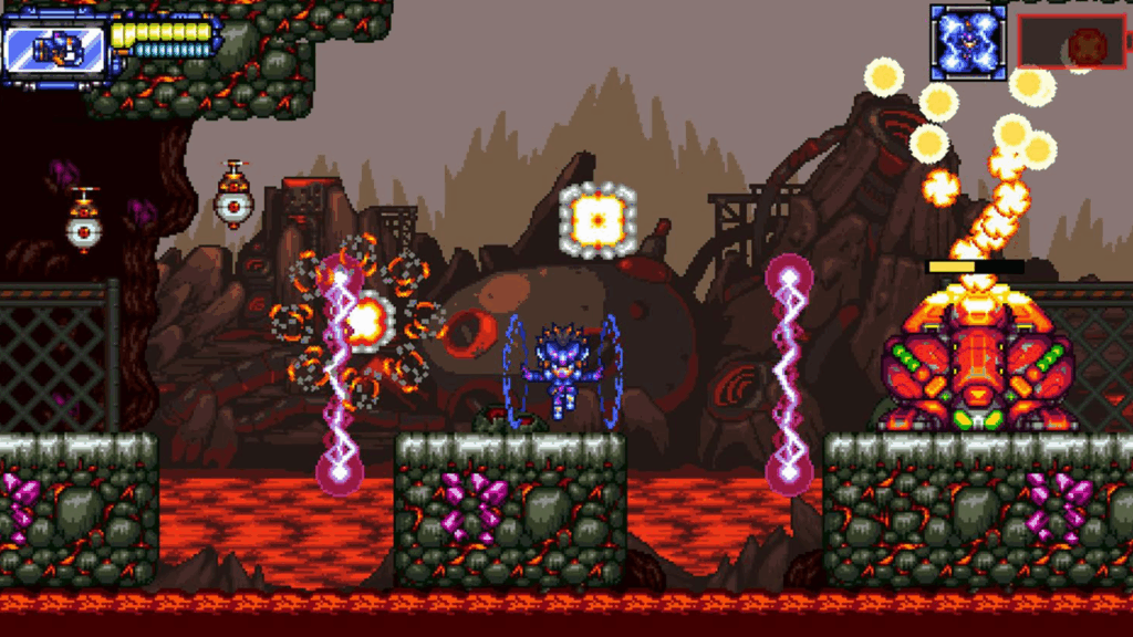 En la dificultad más avanzada los enemigos se vuelven más rápidos, más letales. Y lo mismo pasa con los bosses que pasan de ser asequibles y con patrones hipnóticos de proyectiles y melee a un auténtico dolor de cabeza. Menos mal que los controles responden con fluidez y jamás vamos a frustrarnos por fallar un salto o un disparo. Si erramos, será culpa nuestra y no del juego.