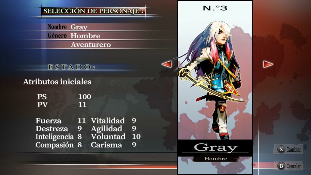 Cuando elijamos al personaje, deberemos ponerle un nombre, pudiendo ver sus orígenes y estadísticas a nivel de vitalidad, fuerza, inteligencia, etc. Luego se nos permitirá elegir su género, desde neutro a masculino o femenino.