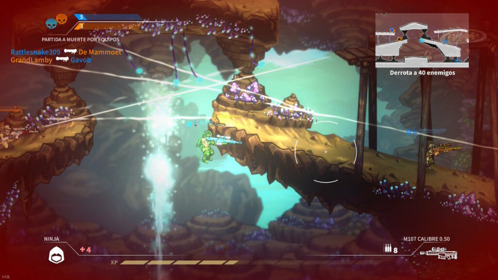 Y es que el equipo de desarrollo de Sky9 Games, gracias a la edición por parte de IndieArk nos presenta un juego con un aspecto sencillo y una base bastante sólida, sobre la cual disfrutaremos de un shooter en 2D con pequeñas arenas repletas de plataformas y un objetivo simple, eliminar el máximo número de enemigos posible, entre sus principales misiones.