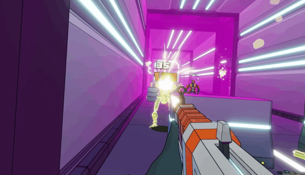 Recoge cualquier arma que encuentres entre una amplia variedad (pistolas dobles, espadas, rifles, lanzacohetes, etc.), además de granadas y más de 60 mejoras que se acumulan como regalos: balas que siguen al enemigo, saltos ilimitados, curación al eliminar rivales o incluso disparar con la mirada. Hay varios tipos de enemigos (disparadores, atacantes cercanos, tanques), y jefes con trucos (evita sus bombas brillantes). Presentan un desafío exigente pero en absoluto imposible, lo que hace que su carácter adictivo sea aun mayor.