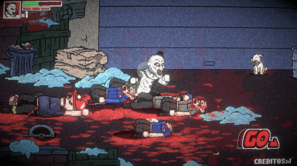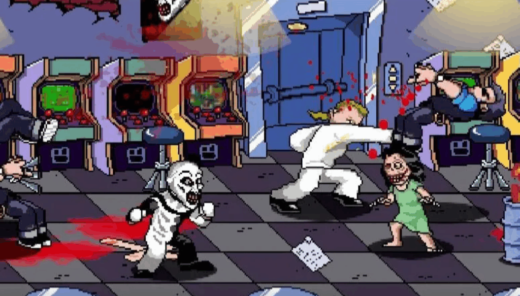 Incluye algunas cutscenes mínimas, pero con guiños a las pelis que te sacan una sonrisita torcida. No es una historia muy profunda, ¡es puro splatter arcade! Referencias a Streets of Rage o TMNT, pero con ese toque gore de Art: ejecuciones brutales donde revientan cabezas y chorros de sangre que tapan la pantalla, literalmente.