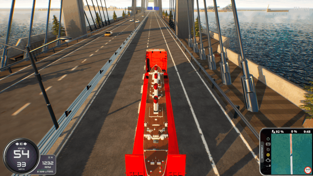 La verdad es que todo se siente bastante realista por momentos, pudiendo observar como la parte trasera de nuestra cabeza tractora se hunde al cargar peso, viendo como la parte delantera se eleva por la suspensión al conducir.