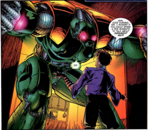 Pero Moore no sólo se queda ahí. Aunque en forma ya he comentado que la estructura con el primer grupo no es novedosa, sí trastoca varios conceptos. Por ejemplo, con la amenaza global del universo Wildstorm, los Daemonitas, se marca un swamp thing y con tipos como Maul y Voodo se saca nuevos enfoques más contundentes emocionalmente (expandirá todavía más a la segunda en una miniserie aparte). Aunque sutilmente pone patas arriba la casa de Jim Lee sin posibilidad de rehabilitación, las subtramas culebronescas y las miradas introspectivas de estos abarcan la mayoría del hilo argumental que, como comenté, salvo ese revoltijo editorial, no son nada nuevas. Ahora bien, y ahí está la gracia del invento, sin solución de continuidad pasamos de la monotonía al colofón refrescante y estimulante de sus sucesores. La inmersión en la psicología de Majestic respecto a la humanidad y sus orígenes es tan contradictoria como deliciosa. Supera con creces la construcción de un mero trasunto de Superman sacando a la palestra un edonista reprimido que en cualquier momento se le pueden fundir los cables y liarla muy parda. Por supuesto, Tao, quien Brubaker elevará a los altares en Sleeper, tiene aquí su giro actoral y cuenta con unos diálogos y momentos de suficiencia cachonda con los supers de altos vuelos. Otro ejemplo lo encontramos con Ladytron, quien por derecho propio, por su forma de hablar y actuar, ha conquistado mi corazón friki. Todo lo que el lector le echaría en cara a un metahumano imaginero lo hace este personaje. Es sin duda el representante del lector en los comics Image. También hay creaciones gordas, como el local Clark´s, cuyo concepto más adelante se va a extender a otras editoriales convirtiendo la idea en un clásico totalmente institucionalizado en nuestros días. El Rick Café del universo metahumano. Por último a destacar es la parte final, donde nos encontramos con un evento de la editorial en toda regla el que se se intuye cierto cachondeo con este concepto por parte del autor al hacer entrar y desaparecer personajes porque sí, al margen de ser una parodia encubierta de la marvelita Actos de Venganza. Vamos, una coña a los crossovers mercadotécnicos.