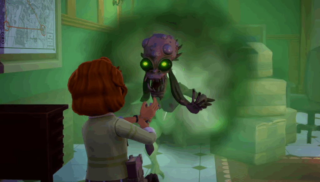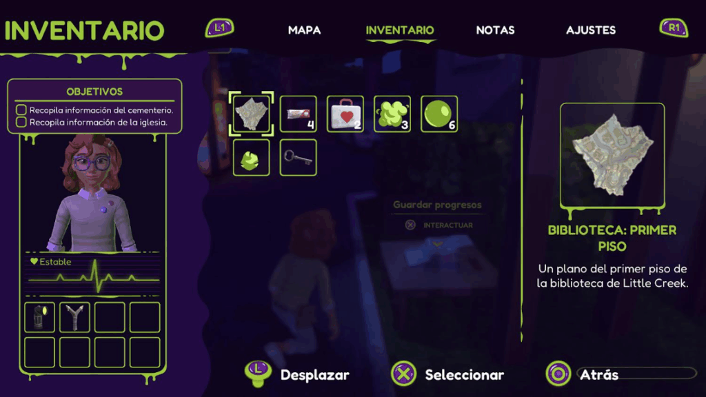 Little Creek no es un mundo abierto infinito, sino secciones semiabiertas (barrios brumosos, teatros abandonados con telarañas danzantes, bibliotecas donde los libros flotan solos y cementerios que crujen bajo tus pies) que invitan a explorar, pero sin agobiar. Sloane y su pandilla charlan medio en serio medio en broma, puro espíritu Pesadillas: pullas rápidas, risas nerviosas y lealtad de película de verano.