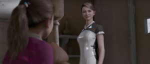 Una cosa que me llamó mucho la atención es el menú del juego. Chloe, es una androide interactiva que será nuestra anfitriona. Cada vez que juguemos Chloe nos saludará, nos dirá algún dato curioso o incluso nos hará alguna pregunta. Es increíble el realismo que Quantic Dream ha conseguido a nivel gráfico, ya no solo la perfección de movimientos (los ojos, las expresiones del rostro…) si no la sincronización de la boca y los labios con el diálogo, pero lo que realmente sorprende de Chloe es que su actitud cambia según las decisiones que tomemos durante el juego.